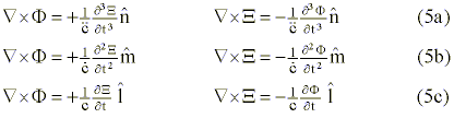 axes to further categorize the localization/fusion process. The spatial del operator (±Ñ) is informed of the bonded (F) and unbonded (X) status of the DNA molecule through the complementing roles of positive and negative temporal operations. Decomposition of the composite wave statement (5) yields the following coherent wave equations: