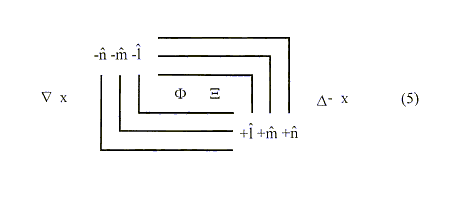 The composite wave statement is:where, adopting Spencer Brown’s notation [165], the right hand crosses ( ) represent successive differentiations with respect to time understood in their physiological context, while the left-hand crosses (
